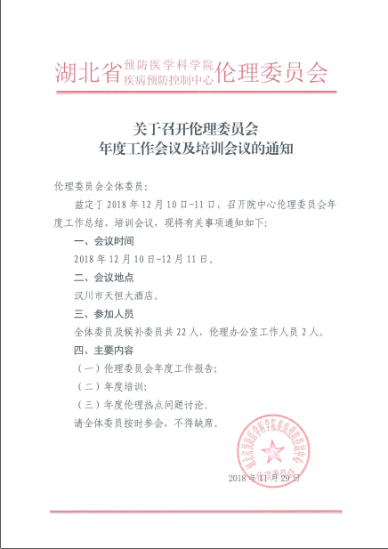 2018年院中心倫理委員會(huì)年度工作會(huì)議及培訓(xùn)會(huì)議通知