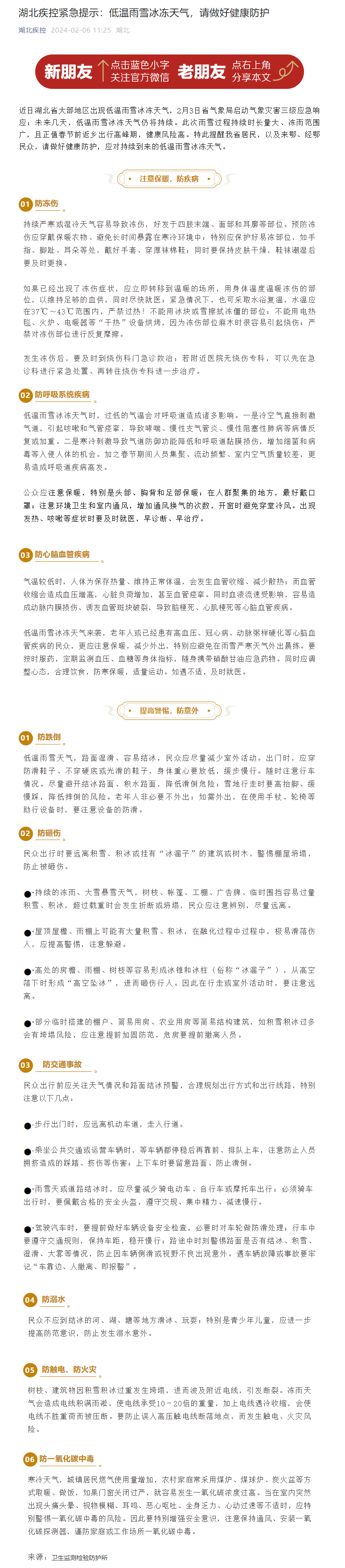 湖北疾控緊急提示:低溫雨雪冰凍天氣,請(qǐng)做好健康防護(hù)