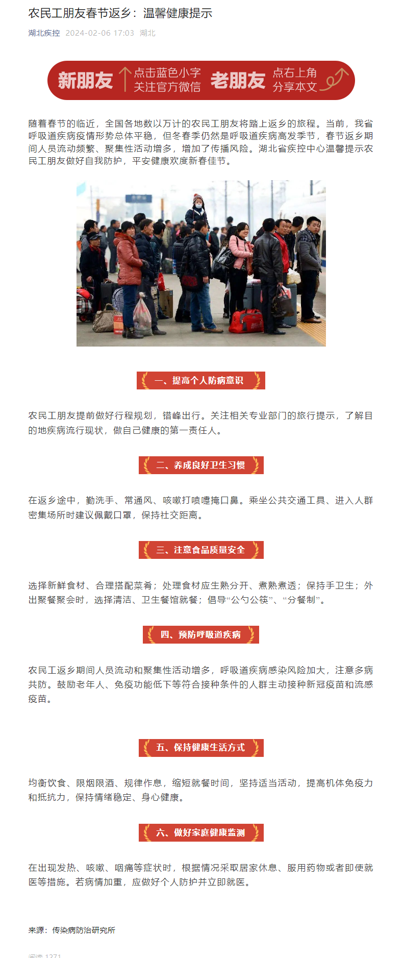 農(nóng)民工朋友春節(jié)返鄉(xiāng):溫馨健康提示