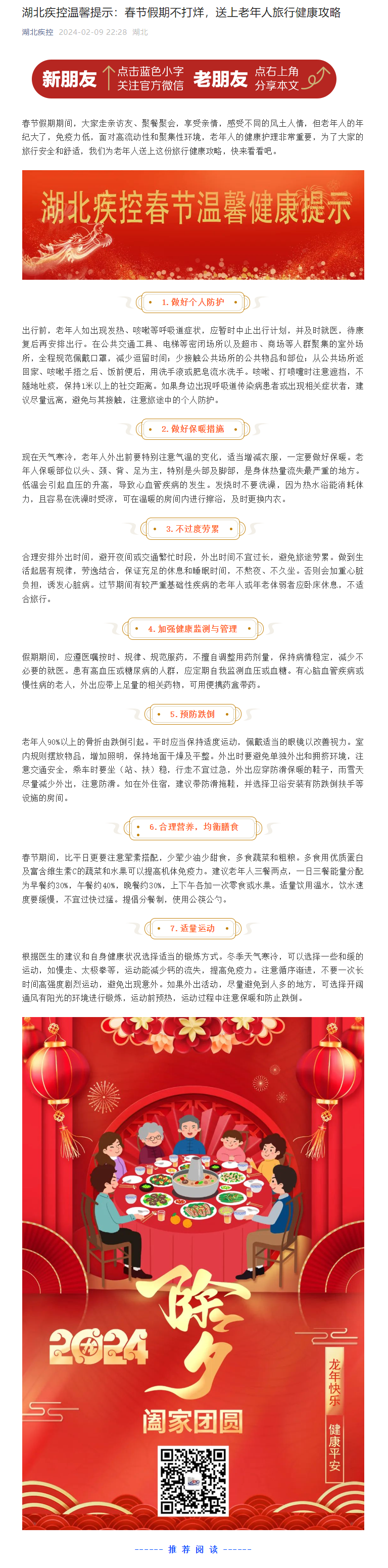 湖北疾控溫馨提示:春節(jié)假期不打烊,送上老年人旅行健康攻略
