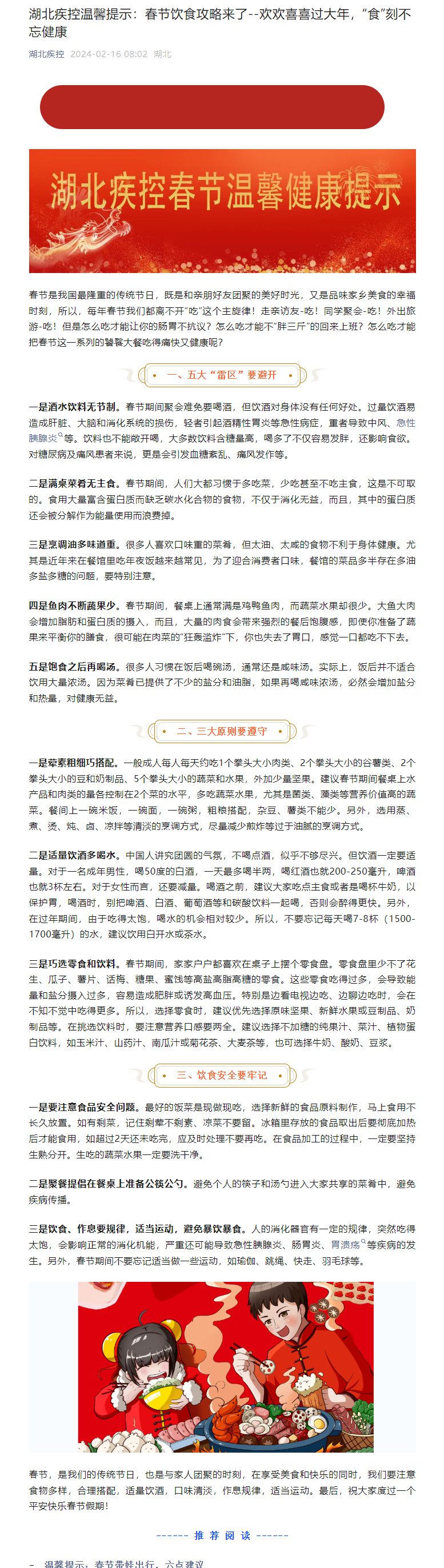 湖北疾控溫馨提示:春節(jié)飲食攻略來了--歡歡喜喜過大年,“食”刻不忘健康
