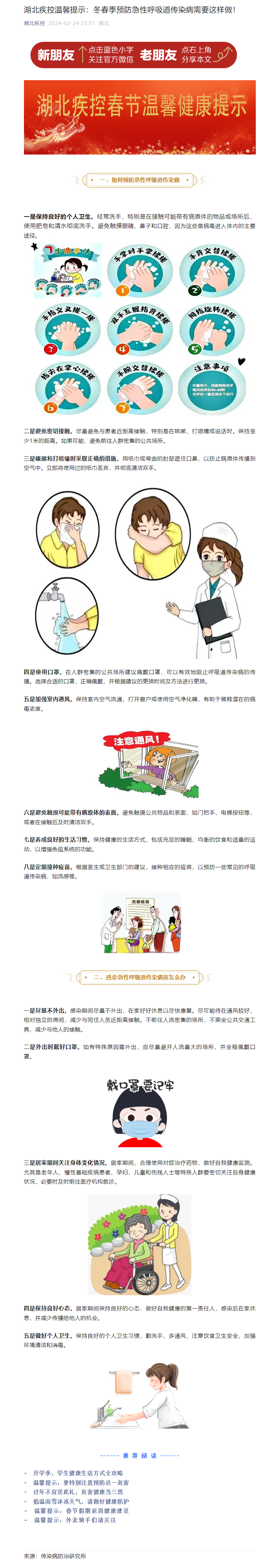 湖北疾控溫馨提示:冬春季預(yù)防急性呼吸道傳染病需要這樣做!