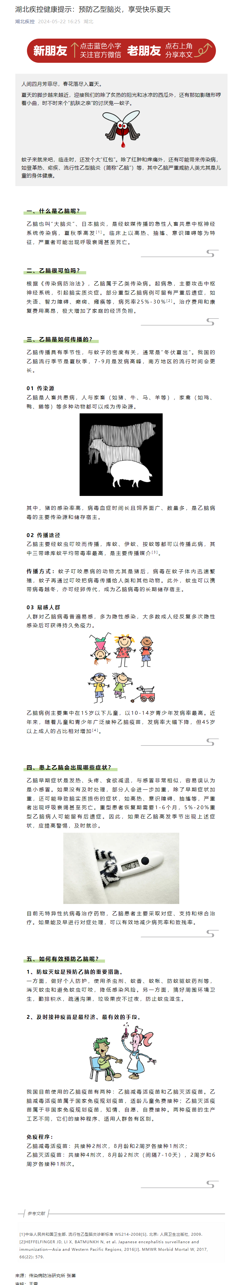 湖北疾控健康提示:預(yù)防乙型腦炎,享受快樂夏天