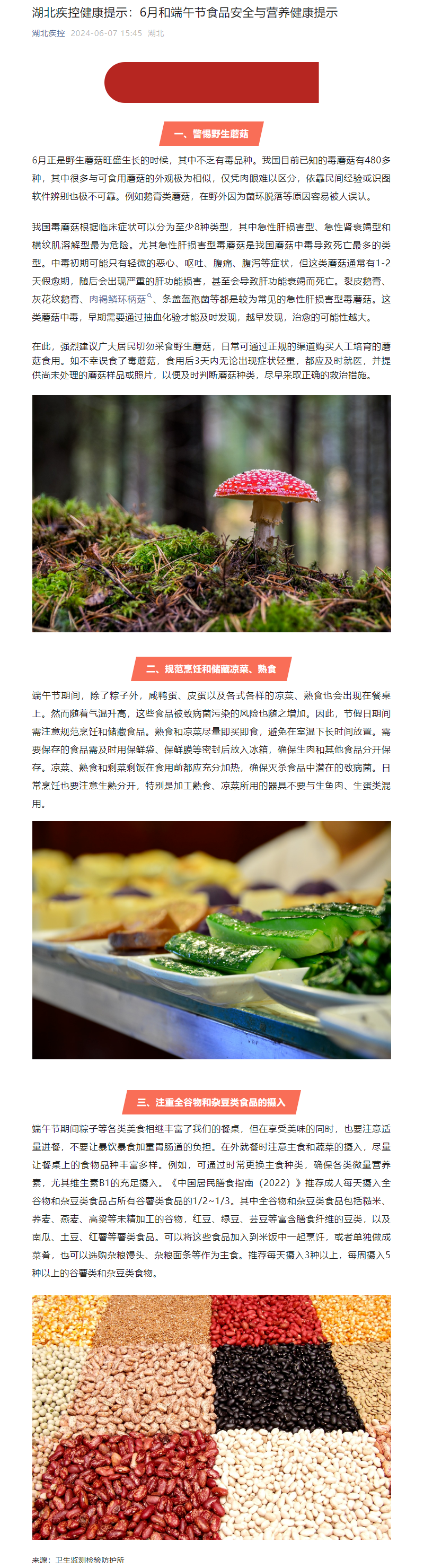 湖北疾控健康提示:6月和端午節(jié)食品安全與營(yíng)養(yǎng)健康提示