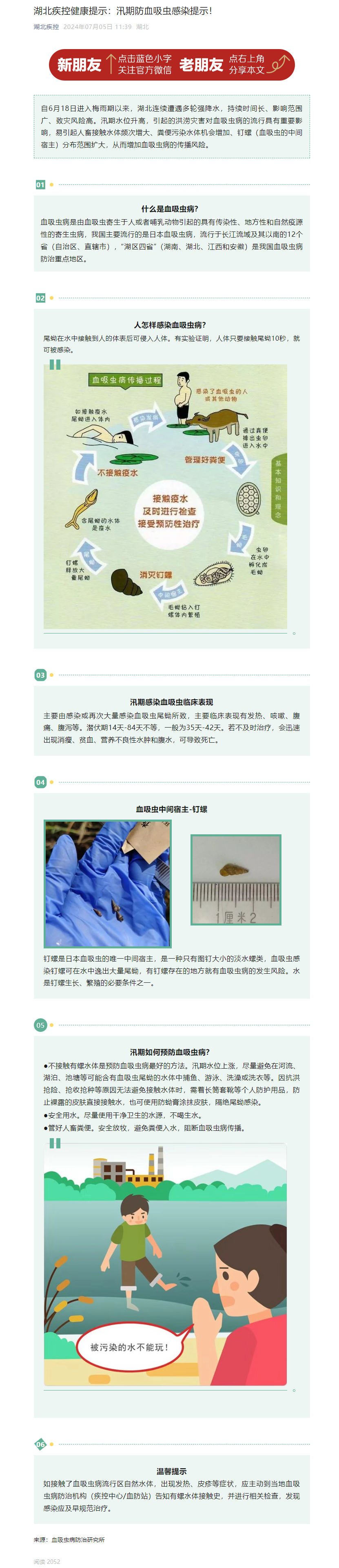 湖北疾控健康提示:汛期防血吸蟲感染提示!