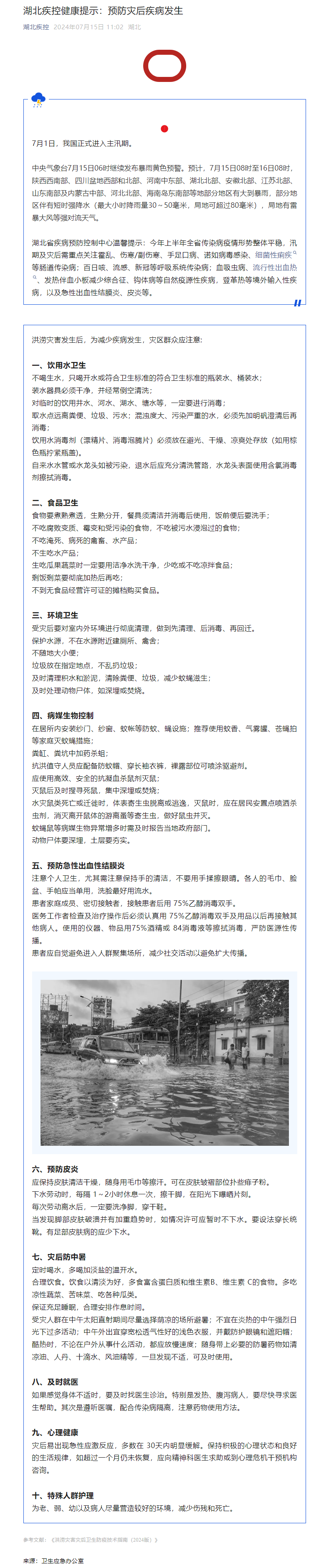 湖北疾控健康提示:預(yù)防災(zāi)后疾病發(fā)生