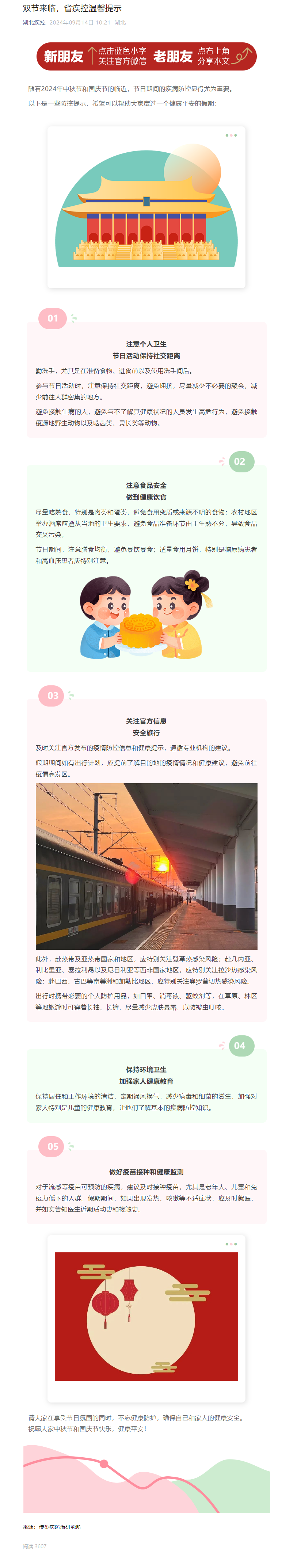 雙節(jié)來(lái)臨,省疾控溫馨提示