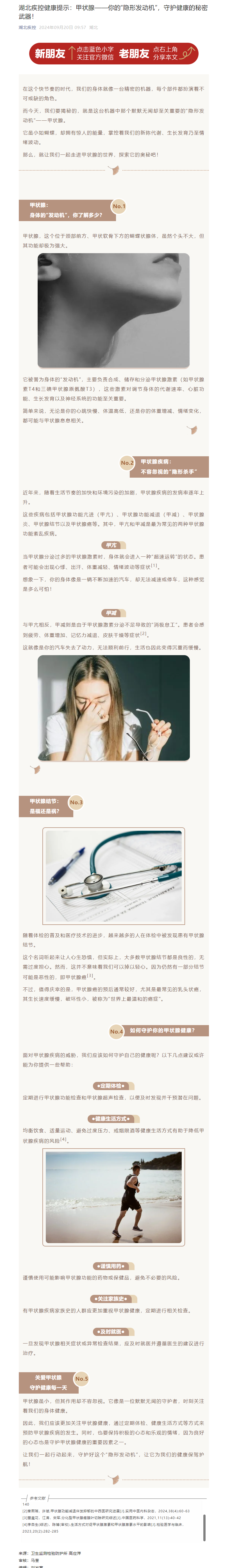 湖北疾控健康提示:甲狀腺——你的“隱形發(fā)動(dòng)機(jī)”,守護(hù)健康的秘密武器