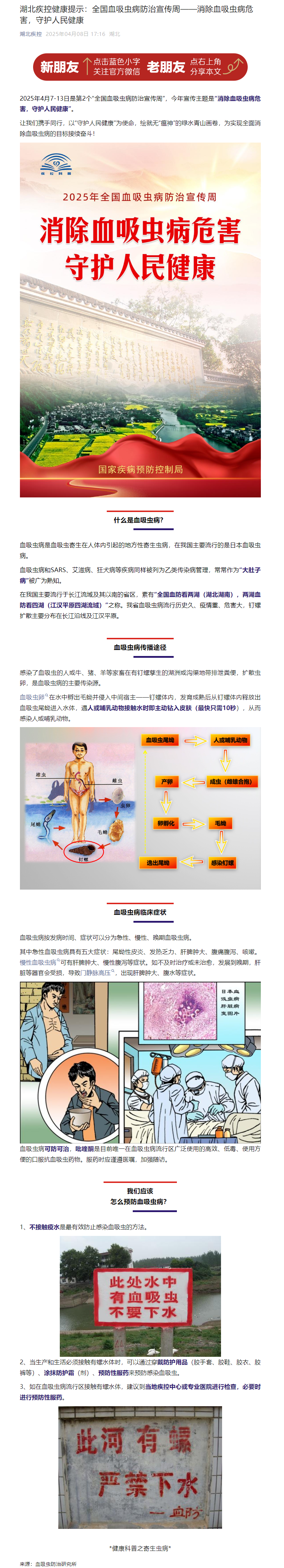 湖北疾控健康提示:全國血吸蟲病防治宣傳周——消除血吸蟲病危害,守護(hù)人民健康