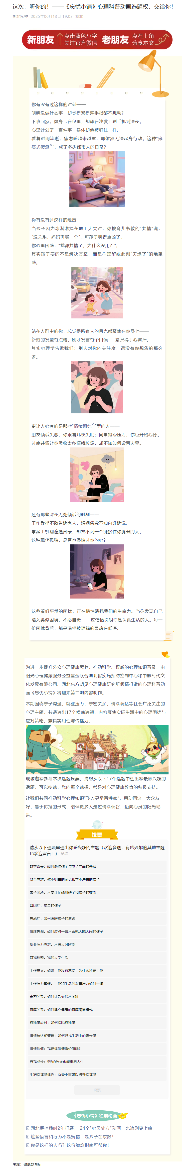 這次,聽你的!——《忘憂小鋪》心理科普動(dòng)畫選題權(quán),交給你!