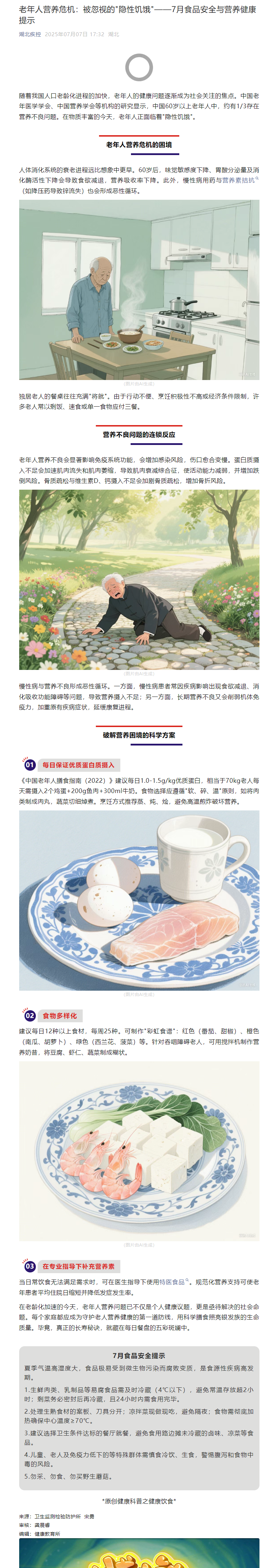 老年人營養(yǎng)危機(jī):被忽視的隱性饑餓——7月食品安全與營養(yǎng)健康提示