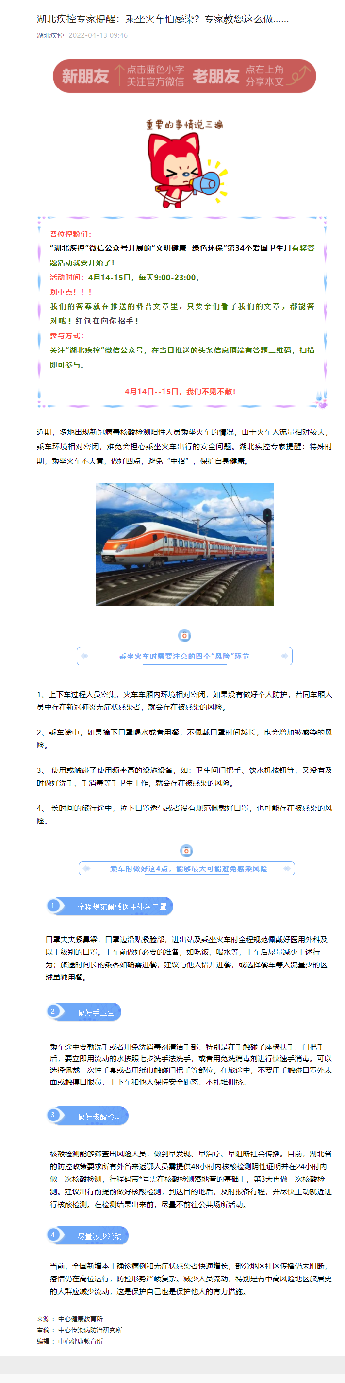 湖北疾控專家提醒:乘坐火車怕感染?專家教您這么做……