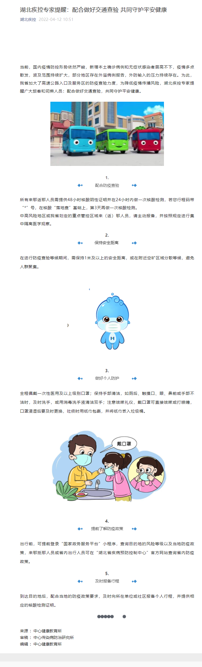 湖北疾控專家提醒:配合做好交通查驗(yàn) 共同守護(hù)平安健康