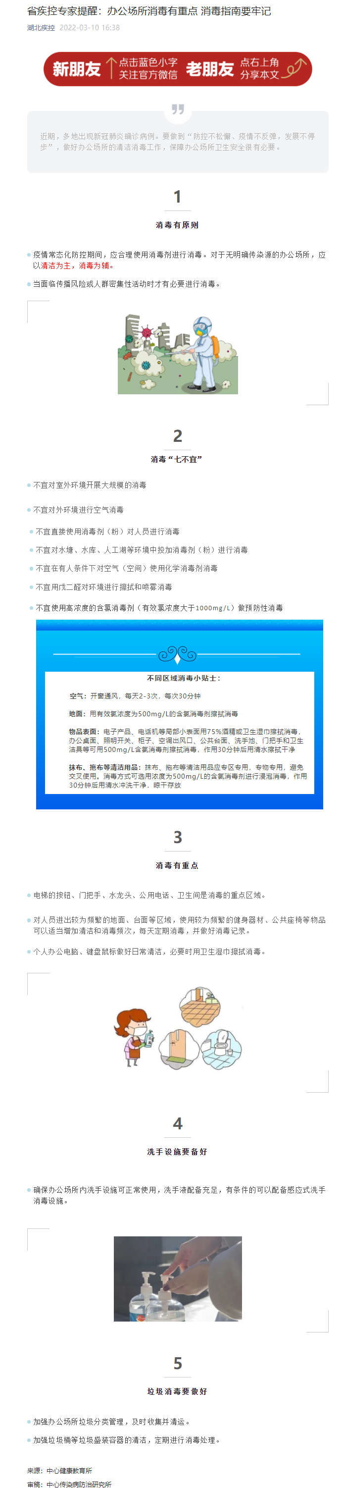 省疾控專家提醒:辦公場所消毒有重點 消毒指南要牢記