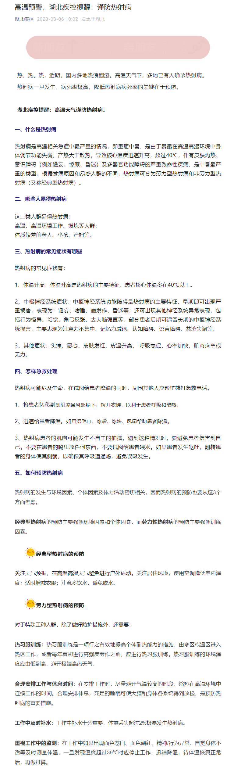 高溫預(yù)警,湖北疾控提醒:謹(jǐn)防熱射病