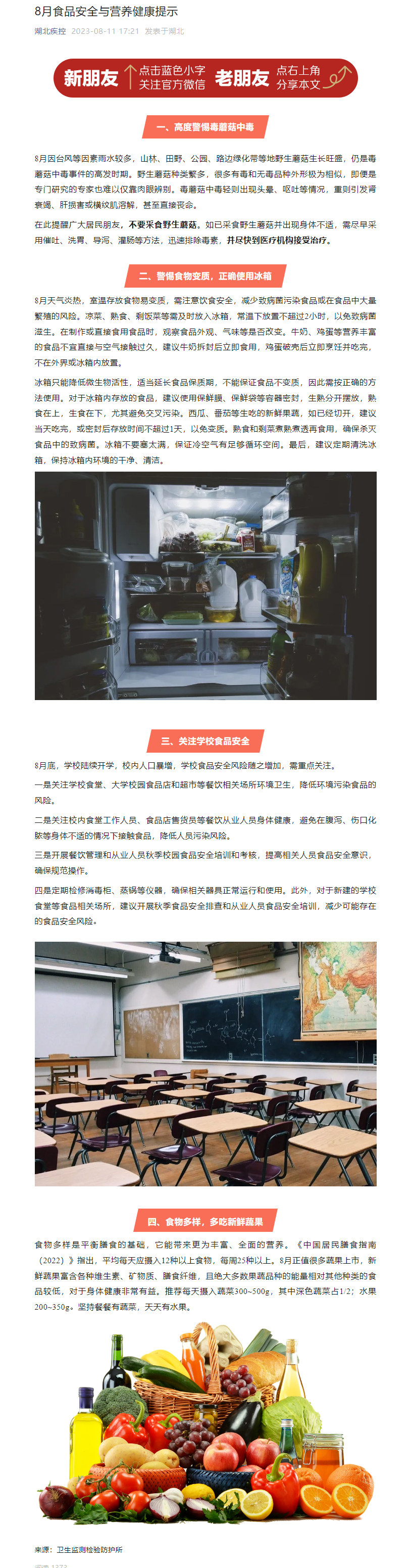 時(shí)間:2023-08-15 09:33:04來源:湖北省疾病預(yù)防控制中心  點(diǎn)擊量:
