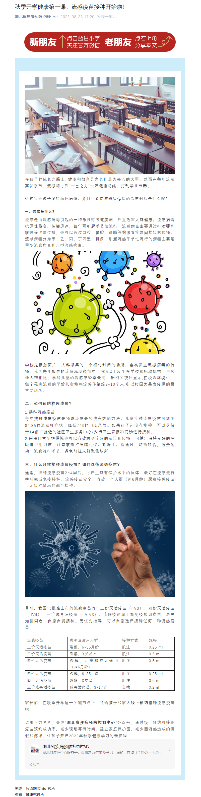秋季開學健康第一課,流感疫苗接種開始啦!