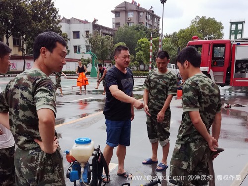 【沙洋疾控中心副主任姚芹在該縣消防中隊(duì)現(xiàn)場指導(dǎo)消殺工作】