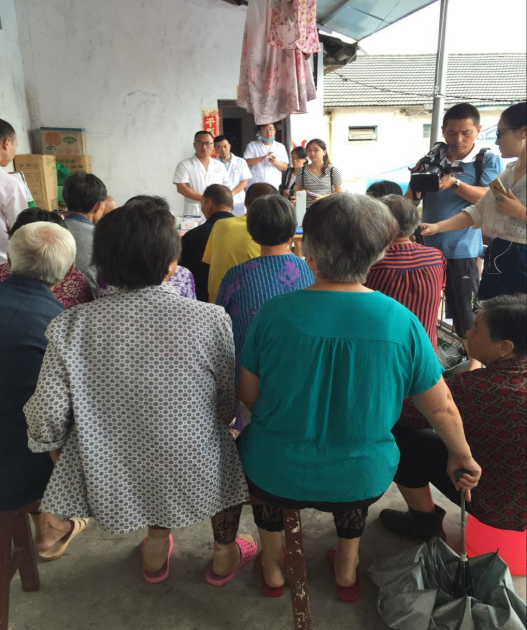 “宣講團(tuán)”一行來到西流河鎮(zhèn)衛(wèi)生院醫(yī)療消殺點和血防監(jiān)督崗,一到現(xiàn)場映入眼簾的是佇立在前方的10多個救災(zāi)帳篷以及宣傳架、消毒工具和擺放在宣講臺上的血吸蟲病相關(guān)模具。冒雨趕來的受災(zāi)群眾擠滿了宣講現(xiàn)場,待村民聚攏后,宣講活動開始了。首先,由市疾控中心傳染病防治科科長彭品章向災(zāi)民講解了如何使用漂白粉晶片對飲用水進(jìn)行消毒。宣講中災(zāi)民踴躍舉手發(fā)言,抱著小孩聽講座的村民趙鳳云現(xiàn)場提問。彭品章不厭其煩,向大家反復(fù)講解,直至災(zāi)民了解了對飲用水的消毒操作過程,村民臉上也露出了久違的笑容。