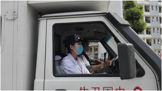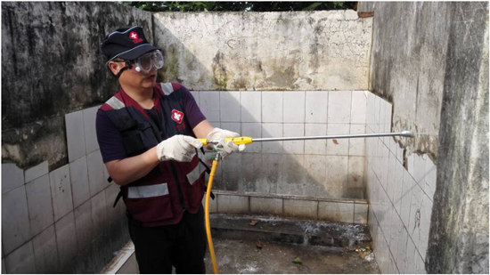 我是第一次加入到消毒隊伍,親身體驗了消毒專業(yè)人員承受的壓力,感受了工作的酸甜苦辣。頂著烈日,冒著梅雨過后的酷暑,穿上實密質(zhì)地的防護(hù)裝,整個人象鎖進(jìn)了密封箱,戴上口罩、防護(hù)鏡、頭套,還沒工作已經(jīng)哮不過氣來,廁所、垃圾堆散發(fā)出的惡臭透過N95口罩,讓人一陣惡心,為了使消毒達(dá)到效果,不得不走得更近些。工作十分鐘后,額頭的汗水模糊了護(hù)目鏡,流進(jìn)眼睛中的汗水辣得眼淚奪目而出,只能拼命咬牙堅持堅持堅持,當(dāng)工作結(jié)束,迫不及待沖到水池邊進(jìn)行清洗,所有的衣服已全部浸濕。