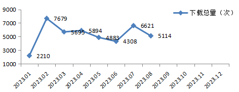7月,數據庫總下載量6621次,比去年同期上升13.14%;8月,數據庫總下載量5114次,同比上升9.82%。