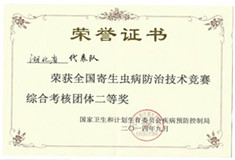 全國寄生蟲病防治技術(shù)競(jìng)賽綜合考核團(tuán)體二等獎(jiǎng)