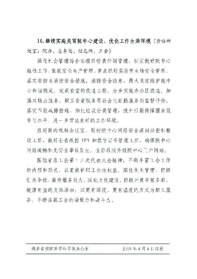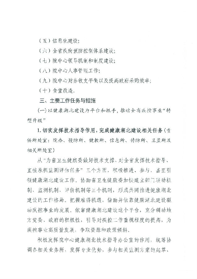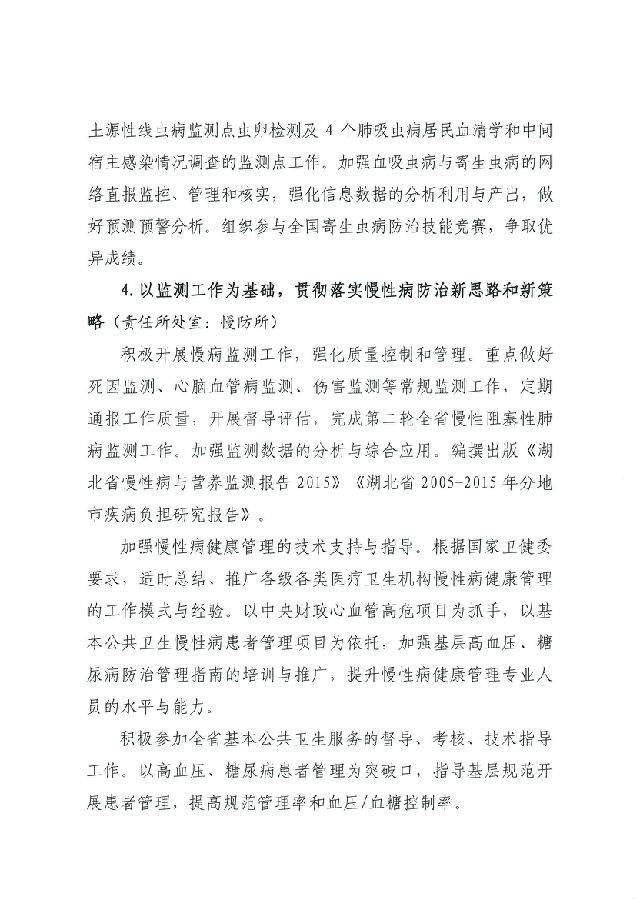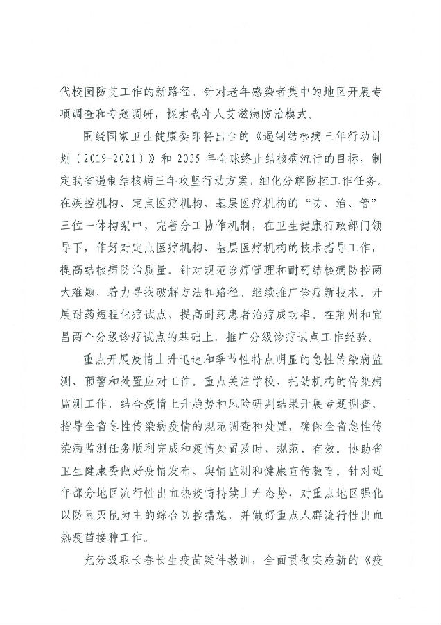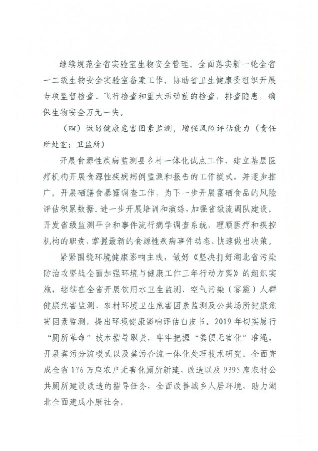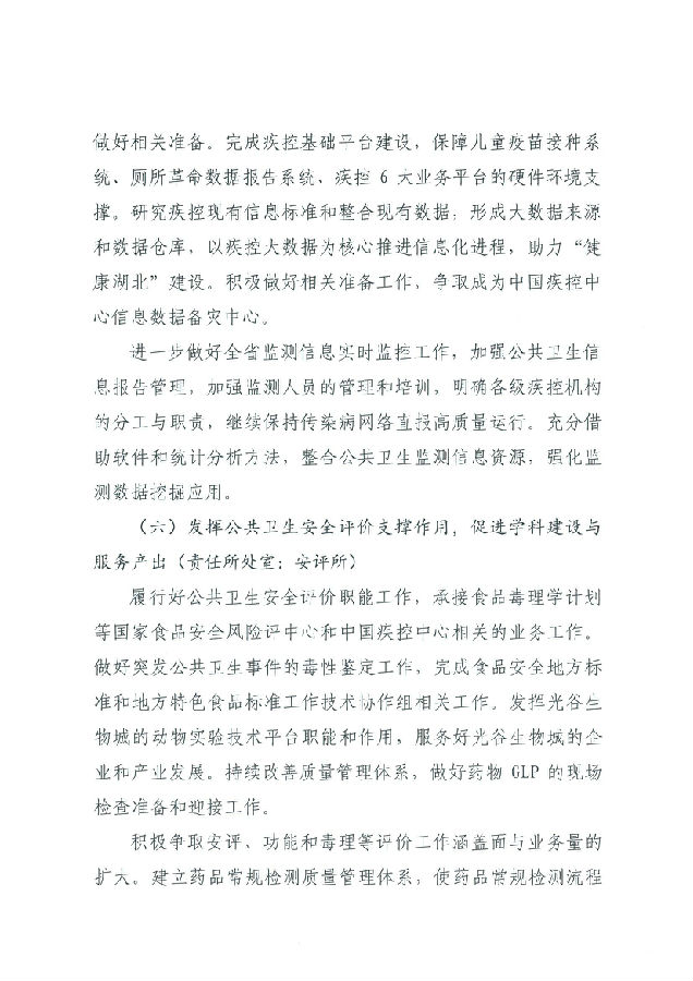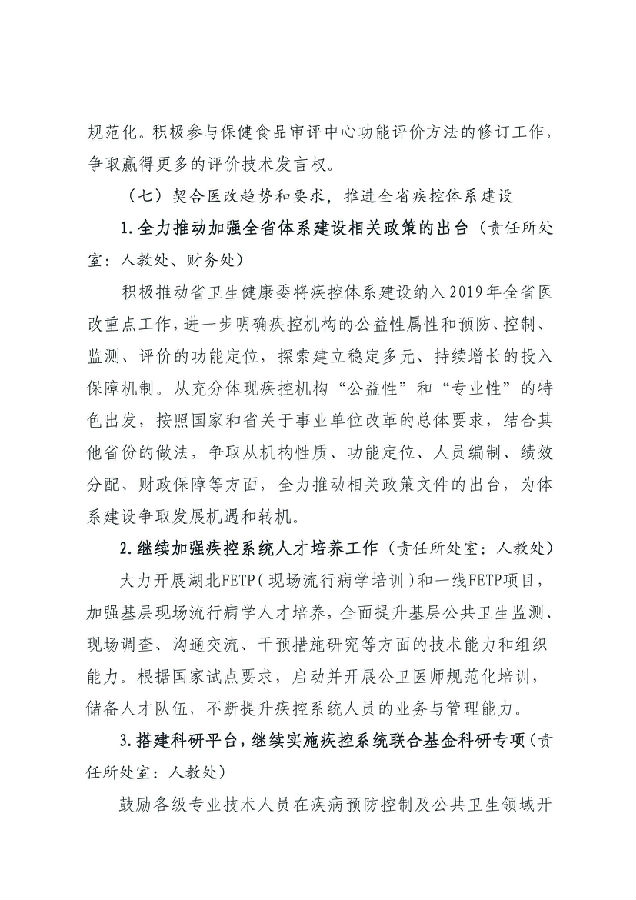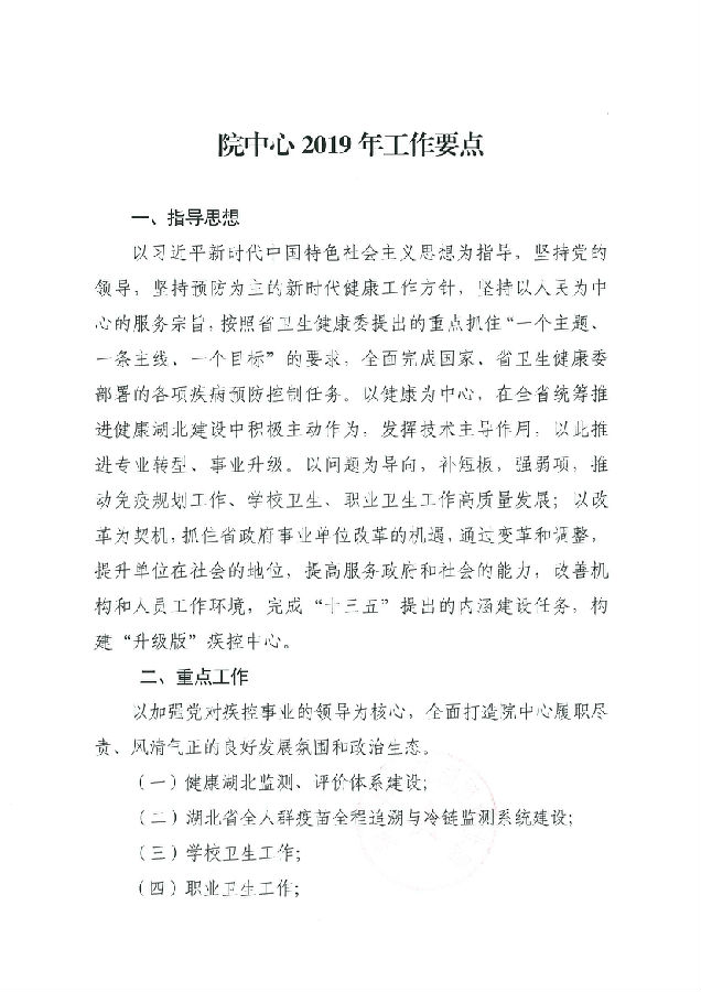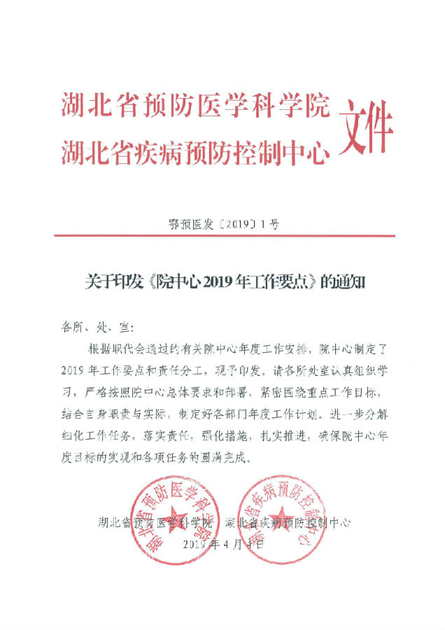 湖北省預(yù)防醫(yī)學(xué)科學(xué)院 湖北省疾病預(yù)防控制中心2019年工作計(jì)劃