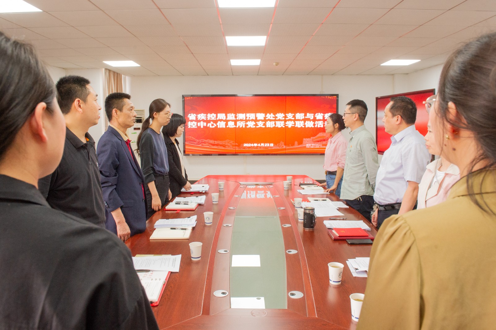 4月23日,省疾控局監(jiān)測預警處黨支部與省疾控中心信息所黨支部開展了主題為“堅持總體國家安全觀 筑牢國家安全屏障”聯(lián)學聯(lián)做活動?;顒佑墒〖部刂行男畔⑺h支部書記李明炎主持,省疾控局監(jiān)測預警處黨支部與省疾控中心信息所黨支部全體黨員參加了此次活動。
