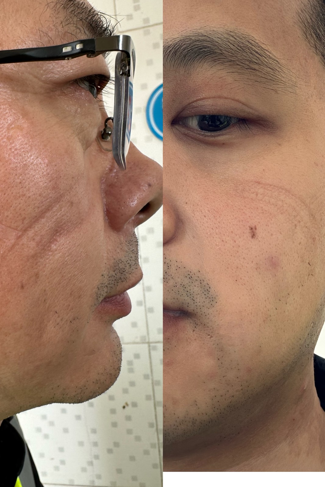 圖片說(shuō)明:長(zhǎng)時(shí)間佩戴N95防護(hù)口罩留下的印子