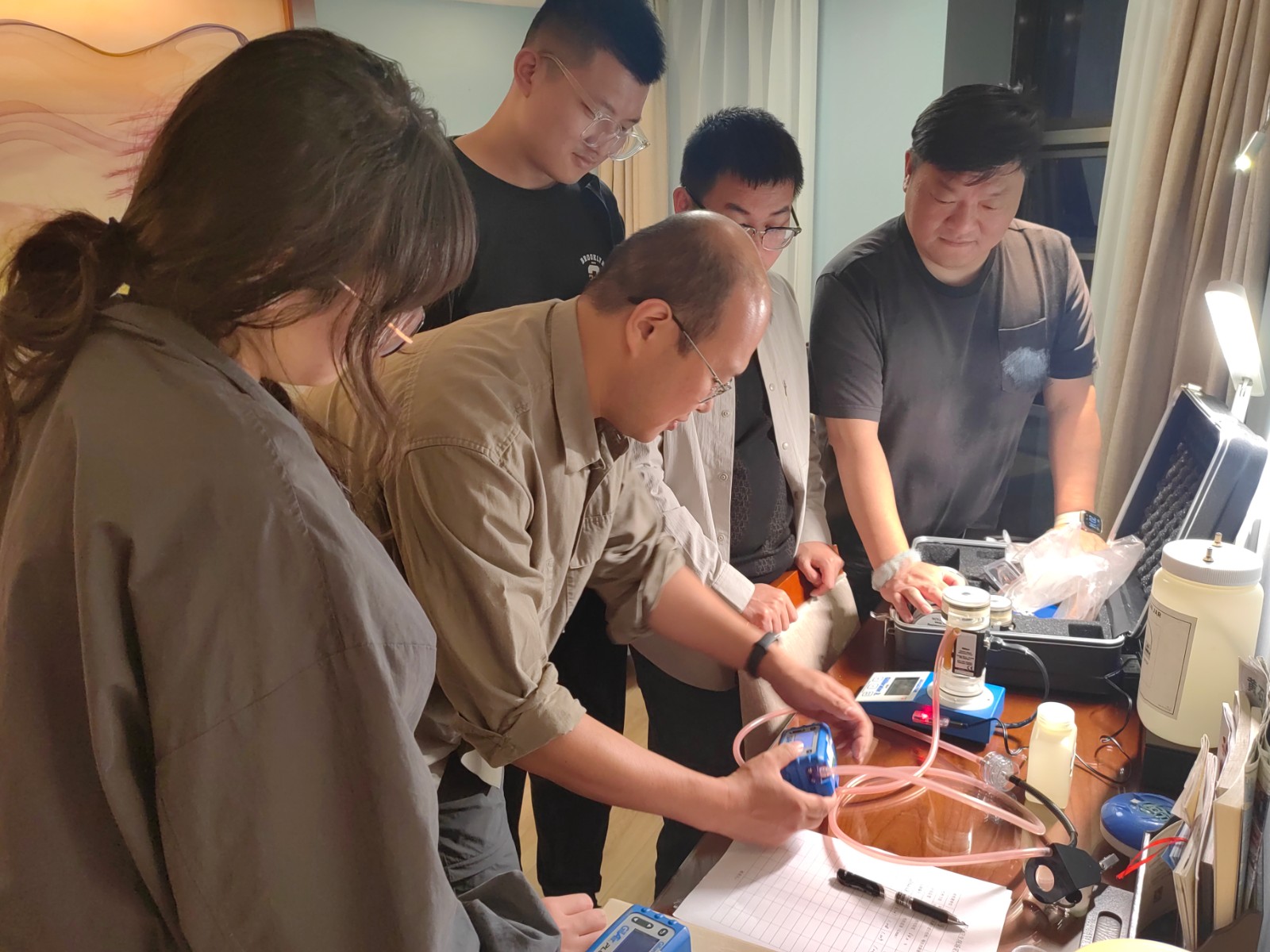 在黃石市西塞山區(qū),為提高工作效率,省疾控中心職業(yè)衛(wèi)生部帶教老師挑燈夜戰(zhàn),夜晚對(duì)學(xué)員們講解了詳細(xì)的工作方法,白天在實(shí)操現(xiàn)場(chǎng)從危害因素的識(shí)別到監(jiān)測(cè)儀器設(shè)備的使用、檢測(cè)采樣點(diǎn)的選取進(jìn)行了手把手帶教,同時(shí)有效幫助了相關(guān)化工企業(yè)職業(yè)病危害場(chǎng)所定期檢測(cè)工作。