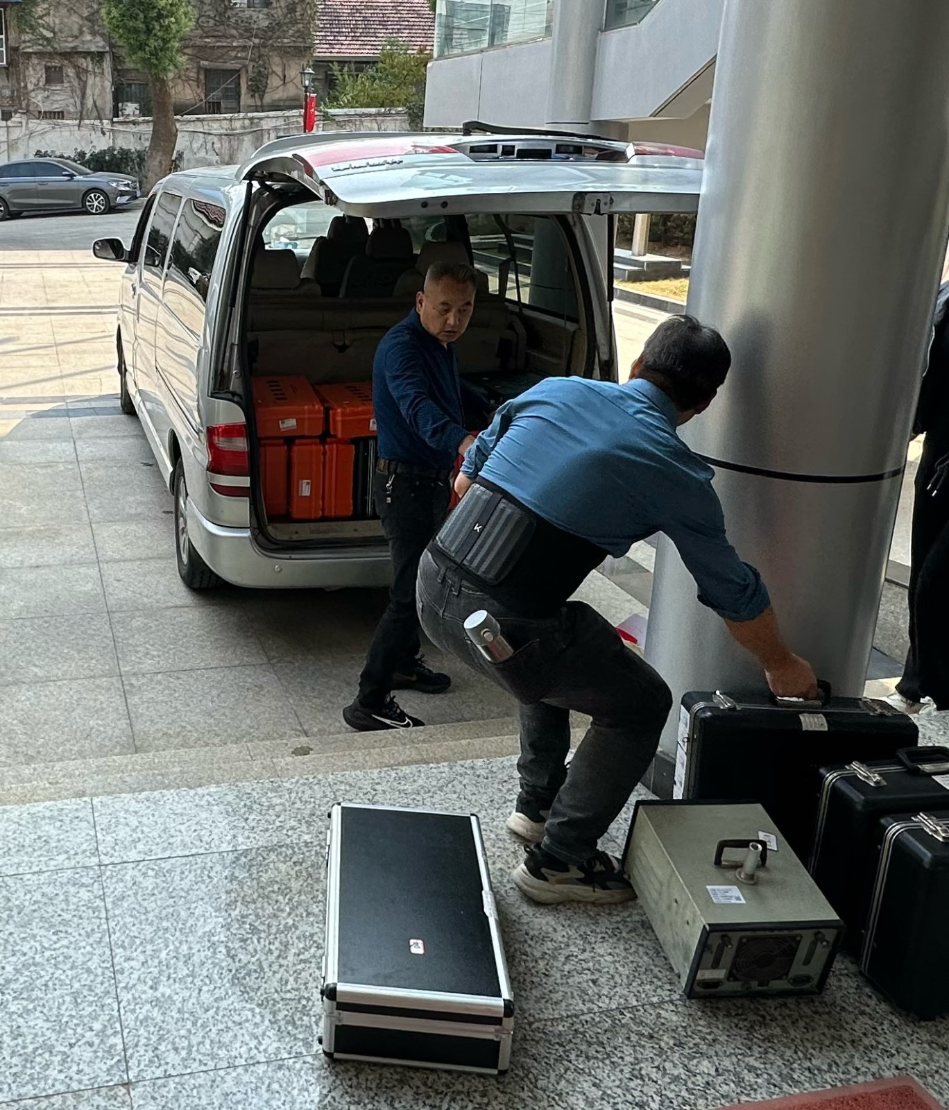 圖片說(shuō)明:疾控職防人頂著腰傷搬運(yùn)檢測(cè)儀器