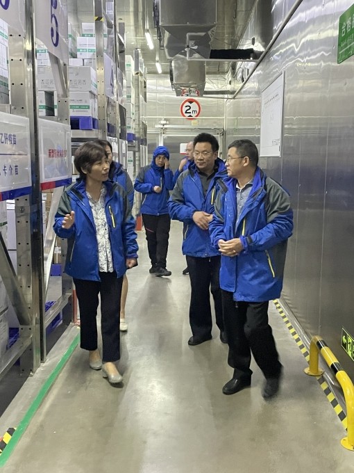 朱洪波書記一行首先現(xiàn)場查看了生物辦疫苗冷鏈建設(shè)和管理情況,并仔細(xì)詢問了疫苗接收、儲存和配送等相關(guān)工作細(xì)節(jié),要求做好每個(gè)環(huán)節(jié)的管理,環(huán)環(huán)相扣,做到冷鏈過程閉環(huán)管理,確保疫苗冷鏈安全。