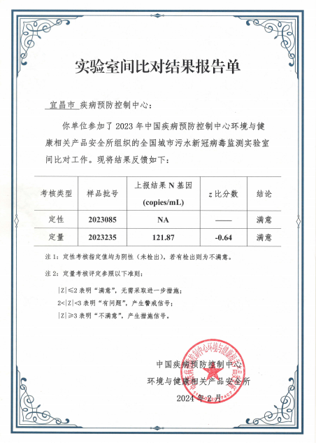 為提高污水新冠病毒監(jiān)測數(shù)據(jù)的準(zhǔn)確性和可靠性,受國家疾病預(yù)防控制局委托,中國疾病預(yù)防控制中心環(huán)境與健康相關(guān)產(chǎn)品安全所于2023年底組織開展了城市污水新冠病毒監(jiān)測實驗室間比對工作。本中心和武漢市疾病預(yù)防控制中心、宜昌市疾病預(yù)防控制中心按要求參加了此次實驗室間比對工作。