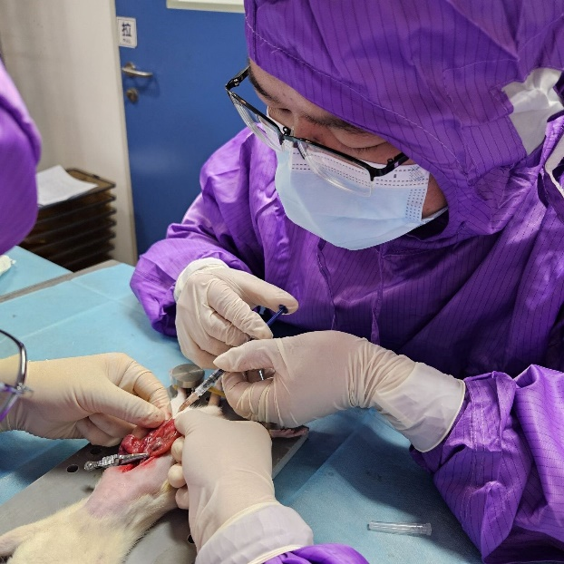 該模型的制作需要進(jìn)行開放性手術(shù)。首先打開腹腔暴露胃腸,在九曲腸袢中找到胰膽管,從十二指腸腸腔穿刺經(jīng)十二指腸乳頭逆行進(jìn)入胰膽管,緩慢注射牛黃膽酸鈉,引起胰腺彌漫性炎癥。如果手術(shù)創(chuàng)口大,注射點(diǎn)摸不準(zhǔn)或者造模劑給予的量和速度控制不好,動物術(shù)中術(shù)后均易引起死亡。安評中心和湖北省中醫(yī)院的同志們在不斷地演練中,操作技術(shù)越來越熟練,細(xì)節(jié)上也不斷的優(yōu)化,最后達(dá)到了腹壁開口僅為2cm,注射點(diǎn)精準(zhǔn)無創(chuàng)傷,術(shù)后無出血感染的近乎微創(chuàng)手術(shù)的水準(zhǔn)。在正式的主試驗(yàn)中,10人組成流水線,平均2分鐘可完成1只動物的造模,24小時后的病理學(xué)檢查也動物胰腺100%出現(xiàn)了彌漫性的水腫、出血、炎性細(xì)胞浸潤、壞死等炎性表現(xiàn)。該手術(shù)方式的成功將急性重癥胰腺炎的大鼠造模技術(shù)往前推進(jìn)了一大步。