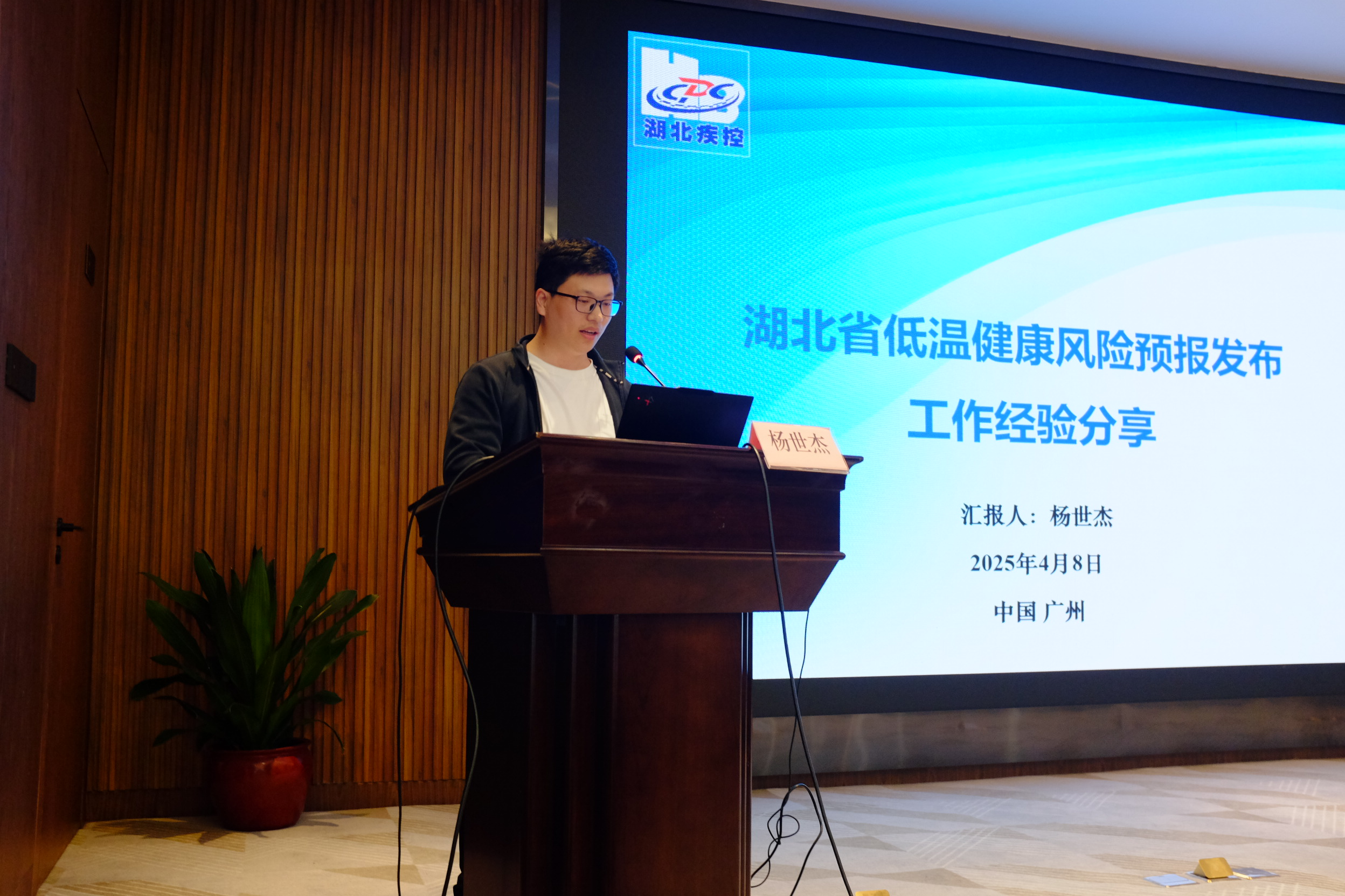 中心(院)衛(wèi)監(jiān)所環(huán)境衛(wèi)生部楊世杰同志代表湖北省在會上做了湖北省低溫健康風(fēng)險預(yù)報發(fā)布工作的經(jīng)驗分享,介紹了我省在方案制定、平臺搭建、信息發(fā)布和健康宣傳等方面的經(jīng)歷和體會,并對下一步平臺優(yōu)化提出了建議。